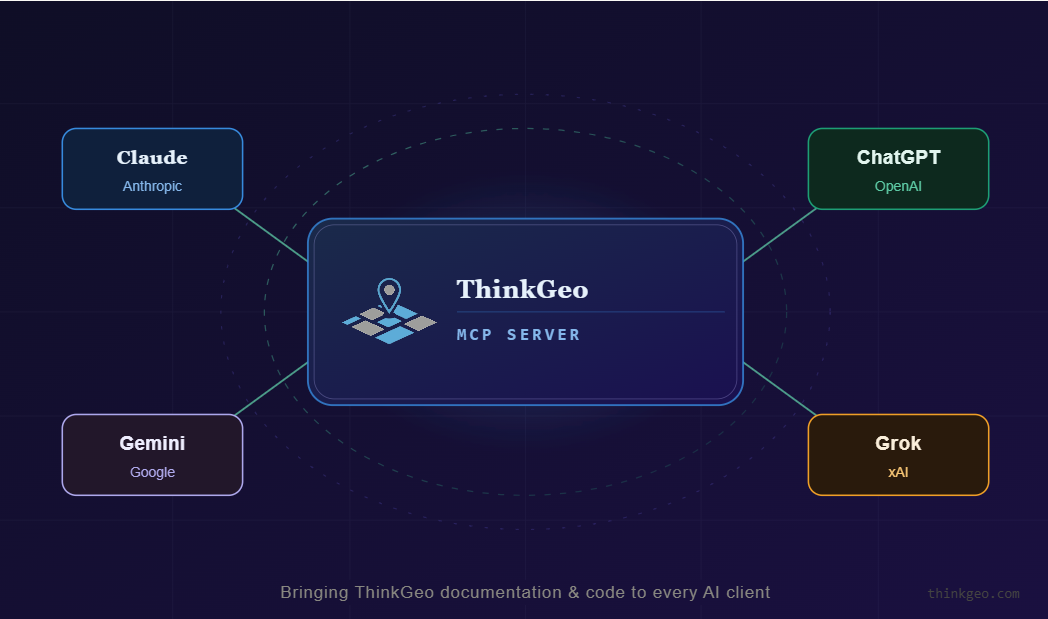 The new MCP server indexes over 12,700 documents across the full ThinkGeo ecosystem: