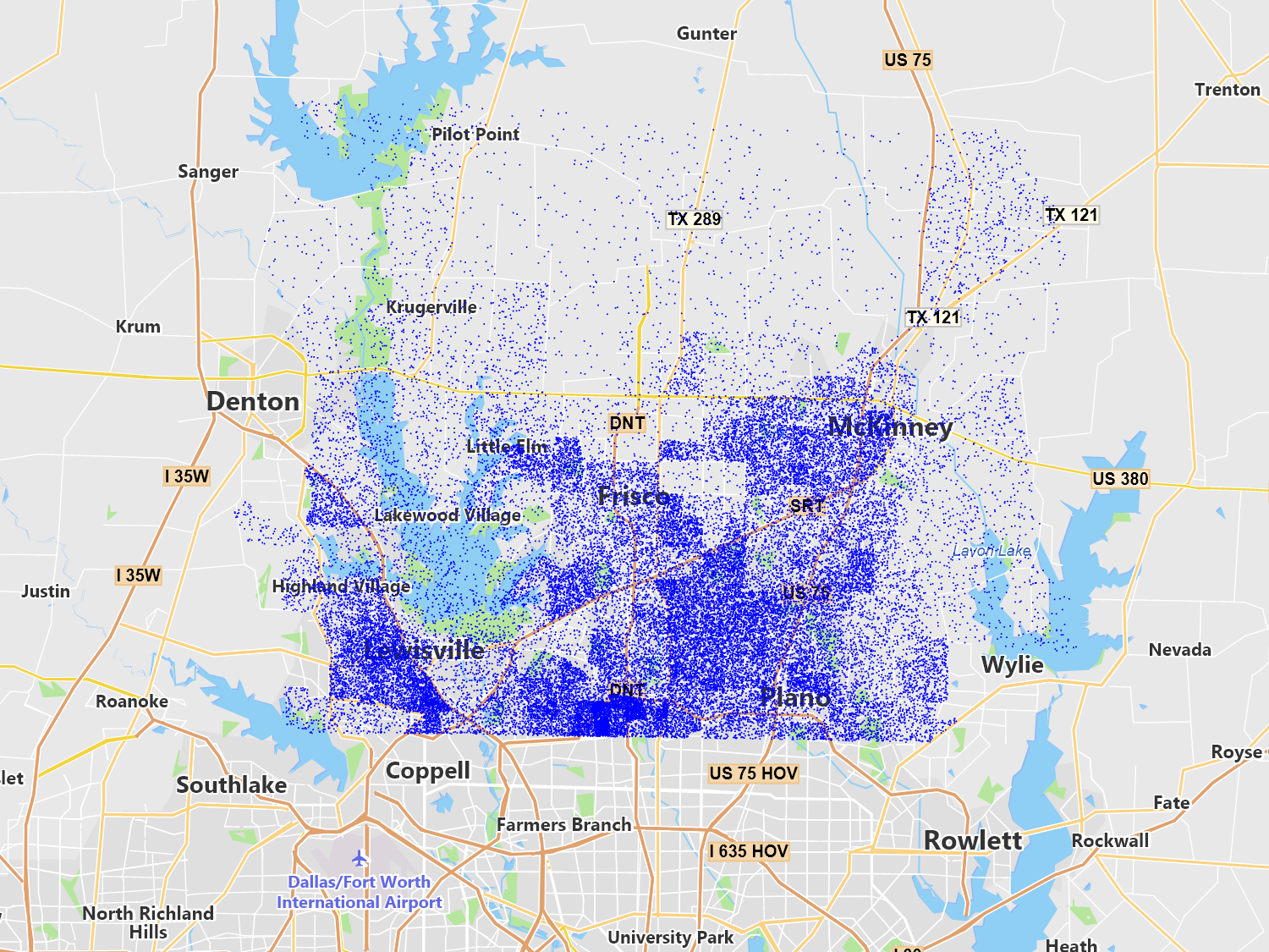 Using your point data, we create a grid over the designated area and assign values to each cell based on inverse distance weighting or our other supported algorithms. This allows you to “fill in the gaps” between your point data.